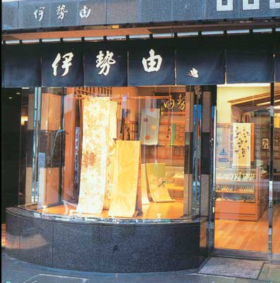 明治の初年、千谷由太郎によって【伊勢由】創業。明治十一年より日本橋若松町に店を構えました。銀座八丁目金春通りでの営業は昭和八年からで、当時は、浴衣・簪・笄・を扱っていました。